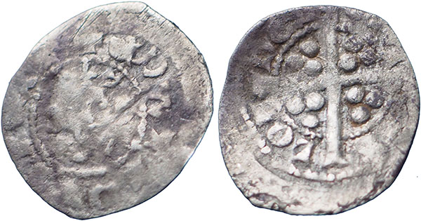 EDWARD II. 1307-1327. Farthing. London. EDWARDVS REX A. Class 10-11. ® CIVITAS LONDON. Weight 0.3 g. Spink # 1474. North 1070/1. Withers Type 30. Diameter 12 mm. |