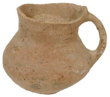 Single Handled Jug. A red painted squat single handled jug. 3200 - 2500 BC. Palestine. 97 mm high. |