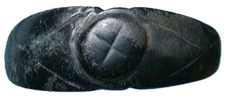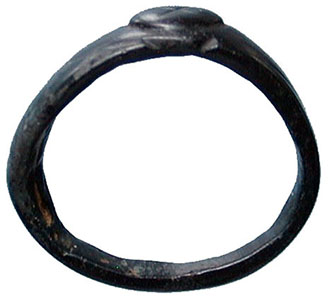 Roman Finger Ring. An attractive solid finger ring with arched shoulders and raised circular bezel, inscribed with a large letter X. 1st-3rd Century AD. 16 mm internal diameter. The metal of this ring appears to be of a base silver appearance, with almost a gun metal look. Dark grey black patina. Complete and wearable. |