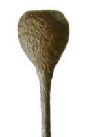 Anglo Saxon Bronze Pin. A bronze pin, the head is conical in shape with a flat top. 8th-10th Century. North Yorkshire. 62 mm high. Complete. |