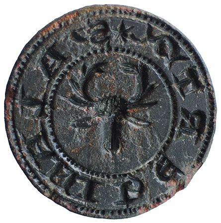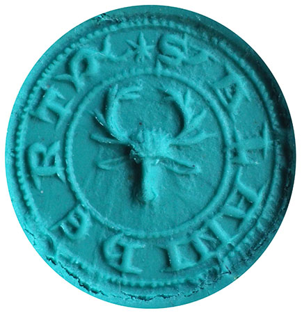 Medieval Bronze Circular Seal Matrix. A very good quality bronze circular seal matrix. Inscribed * S' ALANIHERT (symbol). The design in the centre is a stags head facing. 13th-14th century. Lincolnshire. 22mm diameter. The seal of Alan Hert, the stags head represents or depicts hunting. |