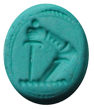 Post Medieval Silver Seal Matrix. A very good quality solid silver stamper type seal matrix, with oval base, tapered hexagonal handle and trefoil suspension loop. The base engraved with an arm clad in armour, holding a sword. 17th - 18th century. North Yorkshire. 14mm x 12mm base, 24mm high. |