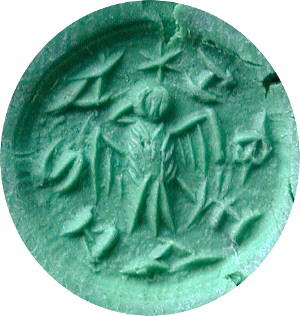 Medieval Bronze Stamper Seal Matrix. A good quality bronze stamper type seal matrix. Inscribed * IRIVHSV. The design in the centre is an eagle with out stretched wings and head turned left. 13th-14th century. 16 mm diameter. |