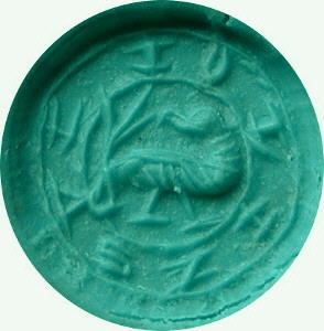 Medieval Bronze Stamper Seal Matrix. An unusual and interesting bronze stamper type seal matrix. Inscribed IOLIZSVI. The design in the centre is of an eagle headed mythical animal with three pronged tail. 13th-14th century. 15 mm diameter, 19 mm high. |