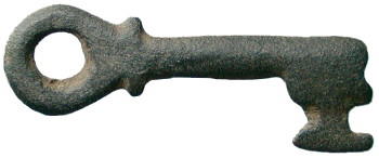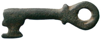 Medieval Bronze Casket Key. A bronze casket key with circular shaped handle. 13th-14th Century. Yorkshire. 32 mm long. |