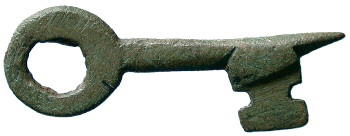 Medieval Bronze Casket Key. A copper-alloy casket key with circular shaped handle. 13th-14th Century. North Yorkshire. 42mm long. Complete with perfect glossy green patina. |
