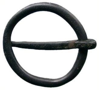 Medieval Ring Brooch. A good sized copper-alloy ring brooch of circular section. 12th-14th century. 35 mm diameter. Complete with working pin. |