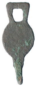Tudor Hooked Clothes Fastener. A hooked clothes fastener with a circular body decorated with a six petalled flower. Circa 16th century. 30 mm x 12 mm. Complete. |