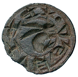 Medieval Bronze Stamper Seal Matrix. A very good quality bronze stamper type seal matrix. Inscribed * PRIVE SV. (Private seal). The design in the centre is a long eared hare. Circa 14th century. 16 mm diameter, 18 mm high. |