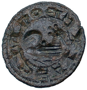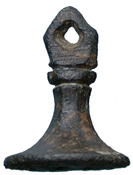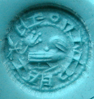 Medieval Bronze Stamper Seal Matrix. A bronze stamper type seal matrix, Inscribed * CEOVAIDEAI. The design in the centre is a cockerel walking left. 14th century. 16.5 mm diameter, 22 mm high. |