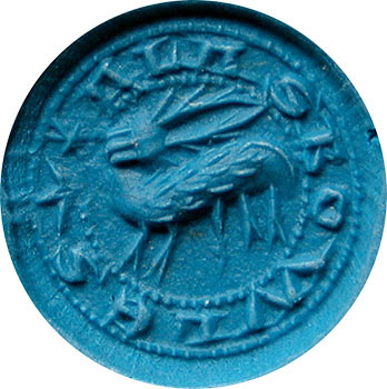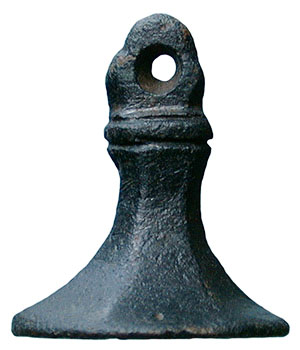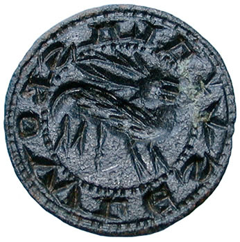 Medieval. Bronze Stamper Seal Matrix. A good quality bronze stamper type seal matrix. Inscribed * ALAS BOWLES (believed to be a medieval hunting cry). The design in the centre is of a stag facing left. Circa 14th century. West Yorkshire. 20.3 mm diameter, 24.4 mm high. Complete. |