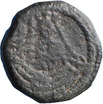 Medieval Coin Weight. A round uniface coin-weight of British manufacture for checking the ryal (rose-noble). The weight depicts the king, with sword and shield, standing in a ship with a rose on the hull. The same design is used on the ryal. The coins were struck from 1465, and the weight dates to the late 15th or 16th century. The weight of 6.6g (102 grains) is very low compared with a full-weight ryal of 7.8g (120 grains). 6.6g. Late 15th to 16th century. P & B R Withers, Lions, Ships and Angels. 16.5 mm diameter. |