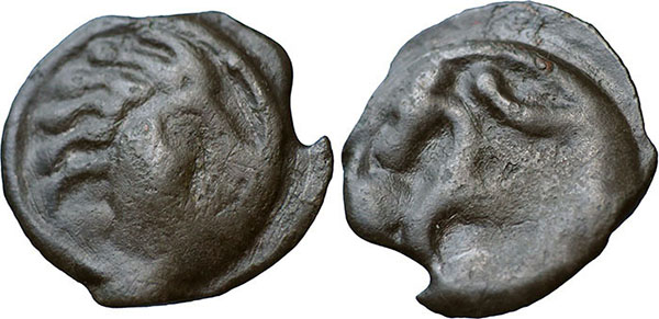GAUL, SENONES. Cast Potin (18mm). Head right with six locks of hair. ® Horse left, pellets around. 4.1g. Circa 1st Century BC. |
