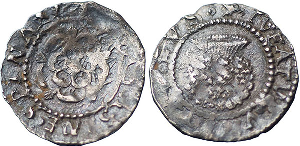 JAMES I. 1603-1625. Penny. Second coinage (1604-1619). I D G ROSA SINE SPINA. Rose. ® TVEATVR VNITA DEVS. Thistle. mm Mullet (1611-12). Old cabinet tone. |