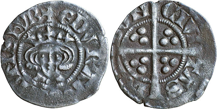 EDWARD I. 1272-1307. Penny. London. Class 4e. Three pellets on breast. ® CIVITAS LONDON. Spink # 1398. North 1027. Note: No pellet before LON on reverse, probably omitted in error, cf. SCBI 39, 259. |