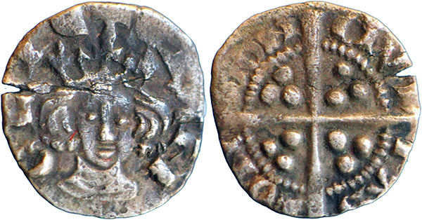 EDWARD I. 1272-1307. Farthing. London. Class 6-7. ® CIVITAS LONDON. 0.3 grams. Spink 1447. North 1055. Withers Type 16. 11 mm. Flan split at 10 o'clock. |