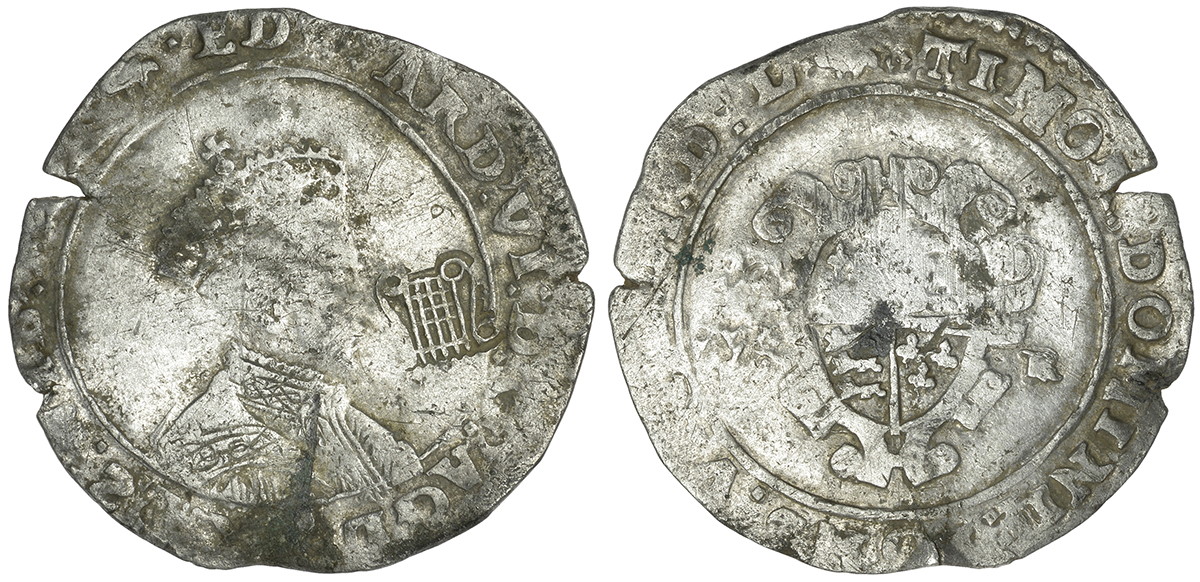 ELIZABETH I. 1558-1603. Countermarked issue Fourpence-Halfpenny. Edward VI, Second period, First issue, Shilling, mdl, Tower, mm. swan, bust 3, obverse with portcullis countermark. 4.70g. Spink # 2546. North 1989. Coin about fine, countermark very fine. Extremely rare. |