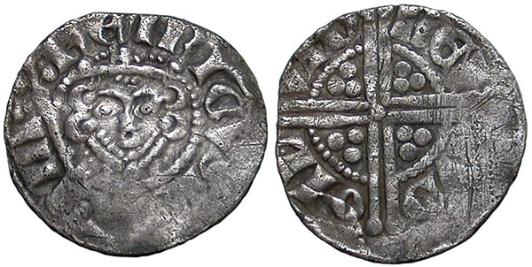 HENRY III. 1216-1272. Penny. Class 5g. RENAVD ON LVND (London). Spink # 1373. Note the tiny pellet side of L in LVND. |