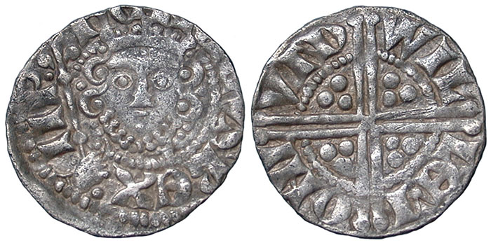 HENRY III. 1216-1272. Penny. Class 5g. WILLEM ON LVND (London). Spink # 1373. |