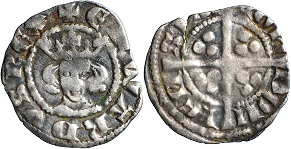 EDWARD I. 1272-1307. Farthing. London. Class 2. Smaller face, trifoliate crown with intermediate jewels. Spink # 1444. |