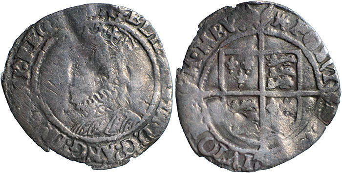 ELIZABETH I. 1558-1603. Halfgroat. Third-Fourth issue (1561-1577). Without rose or date. ® CIVITAS LONDON. mm Castle (1569-71). Spink # 2567. Scarce. |