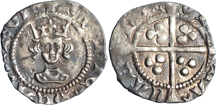 HENRY VI. 1422-1461. Halfpenny. Rosette-mascle issue (1430-31). Calais. Rosettes and mascles in legends. VILLA CALIS. Spink # 1871. North 1454. 12.6mm. Attractive and as struck. |