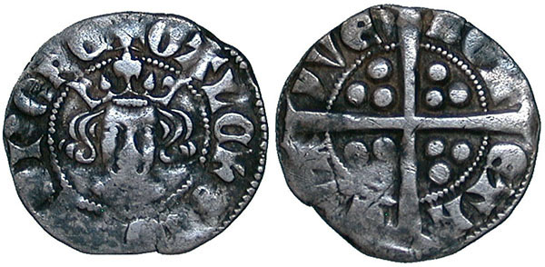 Gaucher of Chatillon. 1313-1322. Sterling. Yves. + GALChSCOMESPORC. Crowned bust facing. ® MON ETN OVA YVE. Long cross pattée with three pellets in each angle. 18mm. |