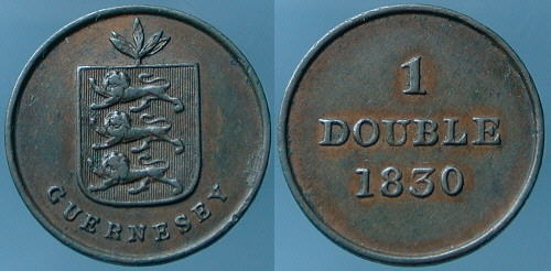 WILLIAM IV. 1830-1837. Double. Arms of Guernsey. ® 1830. Spink # 7202. |