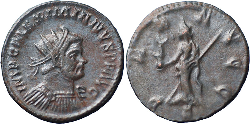 MAXIMIANUS. 286-310 AD. Æ Antoninianus (21 mm). Mint of Lyon. IMP C MAXIMIANVS PF AVG, radiate, cuirassed bust right. ® PAX AVGG, Pax standing left, holding Victory on globe and sceptre. Mintmark S. RIC V-2, 396. |