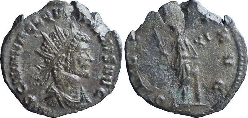 Æ Ant. SECVRIT AVG. Securitas standing left, legs crossed, leaning on column, holding sceptre. RIC 31. |