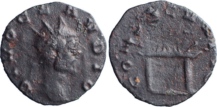 DIVVS CLAUDIUS GOTHICUS. Circa 270 AD. Æ Antoninianus (18mm). DIVO CLAVDIO, radiate head right. ® CONSECRATIO, altar with flames above. Barbarous style. |