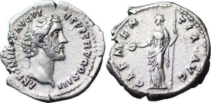 ANTONINUS PIUS. 138-161 AD. Ar Denarius. CLEMENTIA AVG. Clementia standing left, holding patera and sceptre. RSC 123. |
