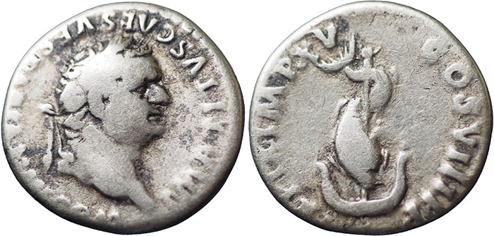 TITUS. 79-81 AD. Ar Denarius. TR P IX IMP XV COS VIII P P. Dolphin coiled around anchor. RSC 309. |