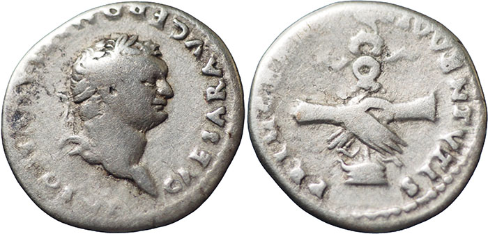 WRS 10206 | DOMITIAN. 81-96 AD. Ar Denarius. PRINCEPS IVVENTVTIS. Clasped hands holding legionary eagle on prow. RSC 393. | £65.00 |