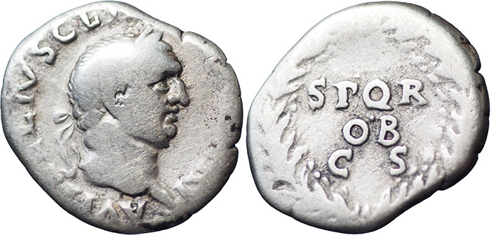 VITELLIUS. 69 AD. Ar Denarius. S P Q R / OB./ C S. In oak wreath. RSC 86. |
