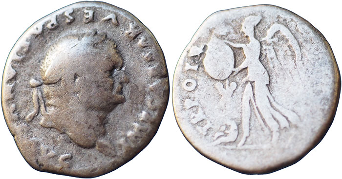 VESPASIAN. 69-79 AD. Ar Denarius. TR POT X COS VIIII. Victory left erecting trophy, captive seated below. RSC 552. |