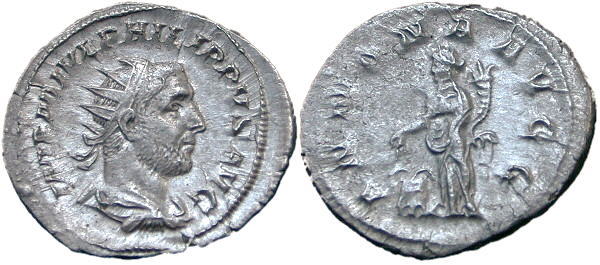 PHILIP I. 244-249 AD. Ar Antoninianus. ANNONA AVGG. Annona standing half left, holding cornucopiae and ears of corn over modius. RSC 25. |