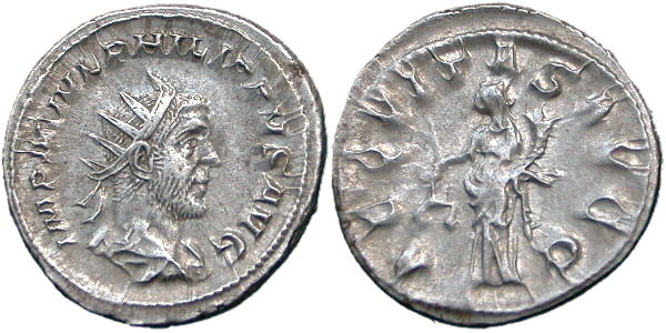 PHILIP I. 244-249 AD. Ar Antoninianus. AEQVITAS AVGG. Aequitas standing left holding scales and cornucopiae. RSC 9. |