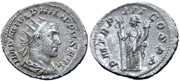 PHILIP I. 244-249 AD. Ar Antoninianus. P M TR P III COS P P. Felicitas standing left holding caduceus and cornucopiae. RSC 124. |