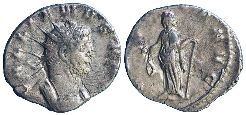 GALLIENUS. 253-268 AD. Ar Antoninianus. LAETITIA AVG. Laetitia standing left, holding wreath and anchor. RSC 426. |