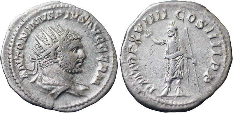 CARACALLA. 198-217 AD. Ar Antoninianus. P M TR P XVIIII COS IIII P P. Serapis, modius on head, standing front, head left, raising right hand and holding sceptre. RSC 349b. |