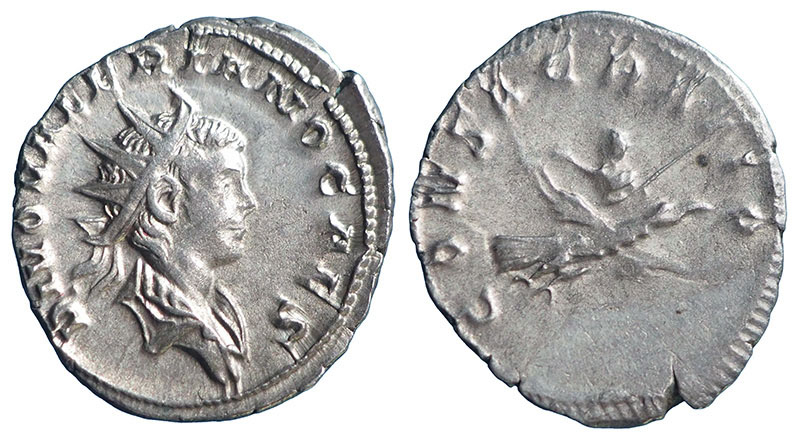 VALERIAN II. As Caesar 256-258 AD. Ar Antoninianus. Posthumous issue. CONSACRATIO. Eagle bearing prince to heaven. RSC 5. |