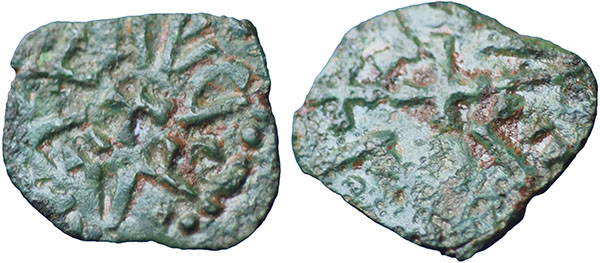 IRREGULAR ISSUE. 843/4-c.855 AD. Æ Styca. Retrograde legend around small cross. ® Retrograde legend around small cross. Spink # 872. 12 mm. |
