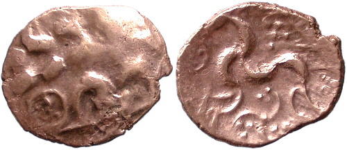 DRIFF 09 | KITE TYPE. Au Stater. Obliterated die. ® Kite shaped object with four pellets above horse left, wheel in front and spiral below. S 392. Van Arsdell: 825-1. This coin CCI 04.0844. Struck from worn dies. Comments by Dr. Philip de Jersey: Same as DRIFF08. | N/A |