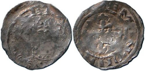 HENRY I. 1100-1135. Penny. Quadrilateral on Cross Fleury type, BMC Type XV. Suneman of Norwich. Bust facing crowned and diademed, head three-quarters left, sceptre in right hand. ® Quadrilateral with incurved sides and lis at each angle over cross fleury. 1.40g. Spink # 1276. North 871. Ex 'Knaresborough Area Hoard'. As struck and good silver. |