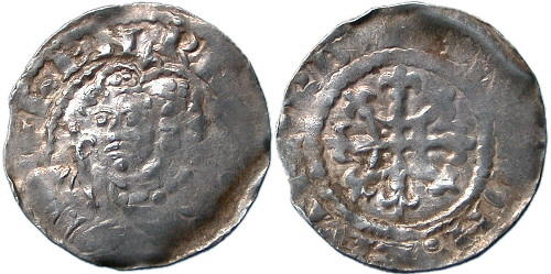 HENRY I. 1100-1135. Penny. Quadrilateral on Cross Fleury type, BMC Type XV. Thetford. Bust facing crowned and diademed, head three-quarters left, sceptre in right hand. ® Quadrilateral with incurved sides and lis at each angle over cross fleury. 1.47g. Spink # 1276. North 871. Ex 'Knaresborough Area Hoard'. As struck and good silver. |