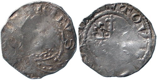 HENRY I. 1100-1135. Penny. Quadrilateral on Cross Fleury type, BMC Type XV. Tovi of London. Bust facing crowned and diademed, head three-quarters left, sceptre in right hand. ® Quadrilateral with incurved sides and lis at each angle over cross fleury. 1.40g. Spink # 1276. North 871. Ex 'Knaresborough Area Hoard'. As struck and good silver. |