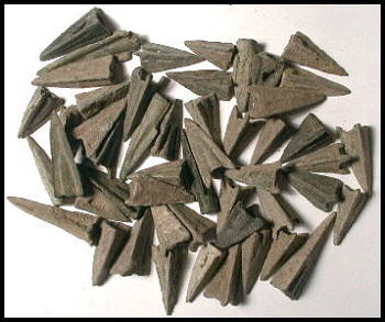Here is a group of Greek bronze arrowheads, all are of the trilobe socketed type. This type was used throughout the Greek world from approximately 600-200 BC. They are in excavated condition and some may require a light clean. Sizes vary from about 15 to 25mm, most being around the 20mm mark. No minimum purchase and no maximum so long as I have enough in stock. Price £25.00 each. For postage & insurance rates see TERMS OF SALE To order click here "place your order by email" Use our secure on line server "order on line by credit card" |