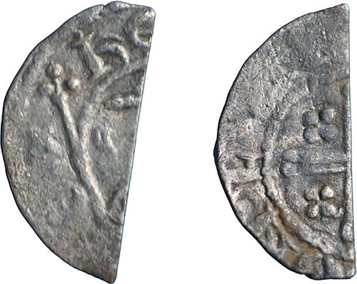 Henry II / John Cut Halfpenny Class 4b / 4c [ON LVN] (London). Note the crescent above the h in Henry.