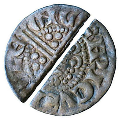 HENRY III. 1216-1272. Cut Halfpenny. Class 3. NIC[OLE ON C]ANT (Canterbury).